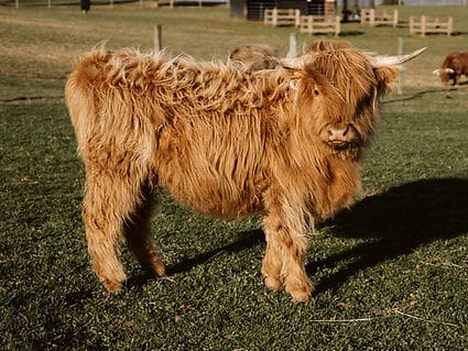 Knockout was a looker by the time he was 8 months old and we really debated keeping him for our own, especially when we started working with him on the halter and discovered his gentle temperament. On graduation day from halter training, Knockout seemed to be strutting around trying to impress the other calves with his prowess. He even tried his bull voice when he went back out to join the other calves!! At 8 months, he seems to be cozying up to the girls and mimicking his sire’s twitchy nose face. He thinks it is time already! Mi